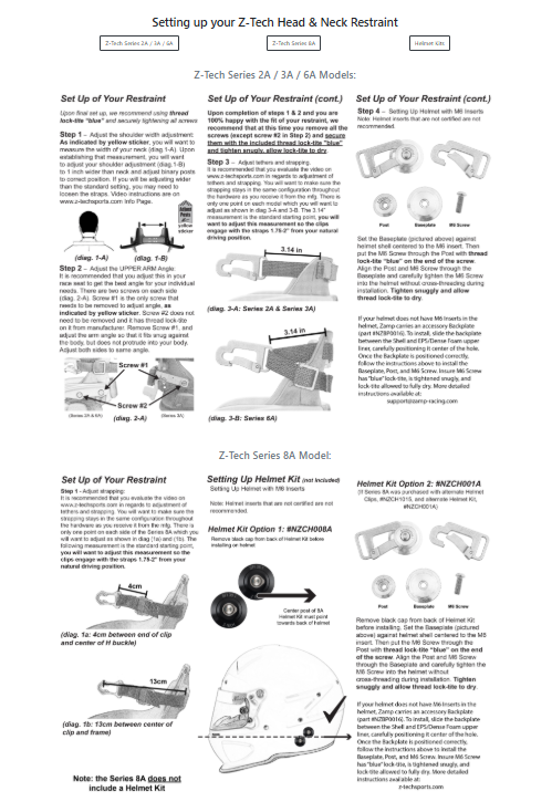 Z Tech Head & Neck Retraints Set Up Guide. Click Here